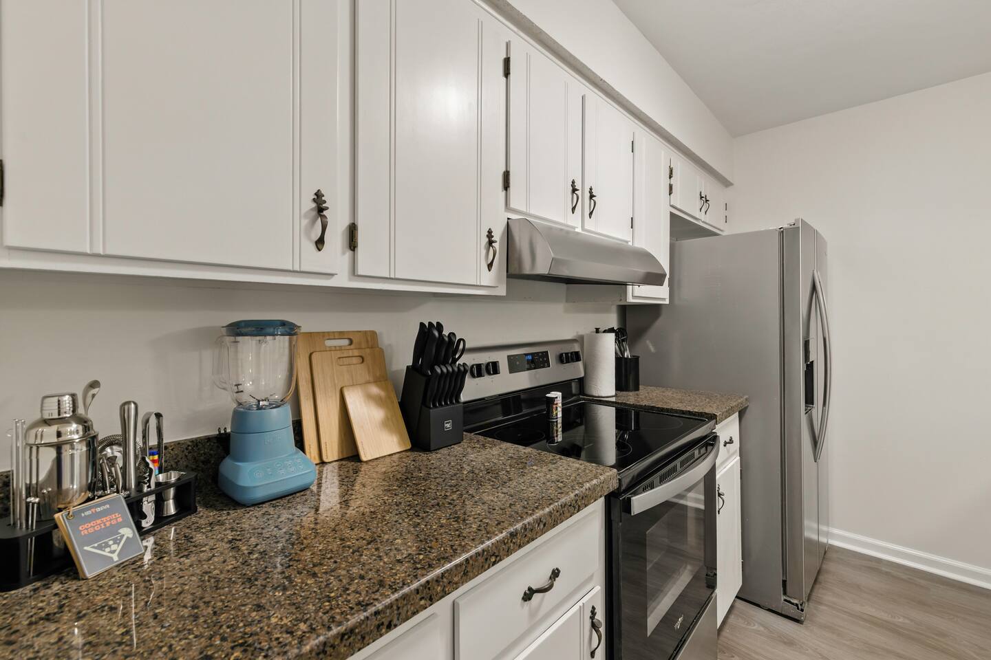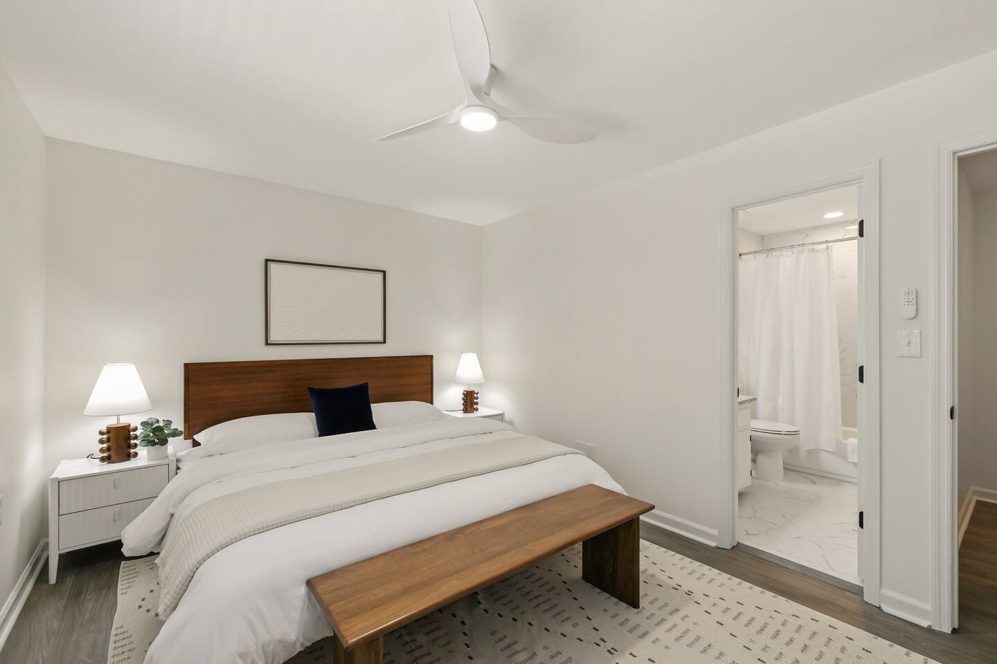This two‑level townhome combines modern updates with everyday functionality. The open living area is warm and inviting, while the kitchen is well‑equipped for daily meals and longer stays. Upstairs, both bedrooms feature private bathrooms with updated finishes, offering comfort and separation for guests sharing the space. As an end unit, the home benefits from added light and a quieter feel.